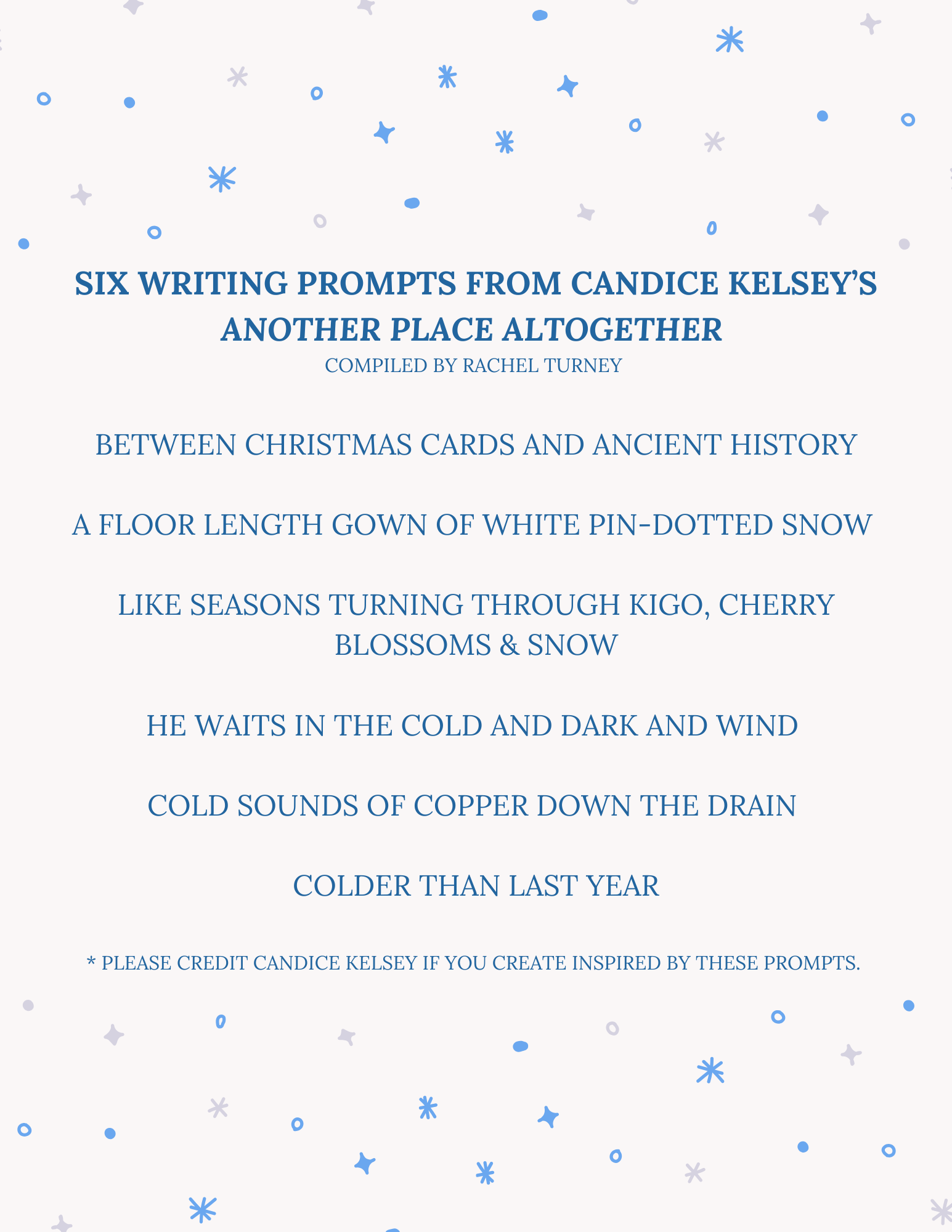 Christmas Writing prompts from Candice Kelsey's Another Place